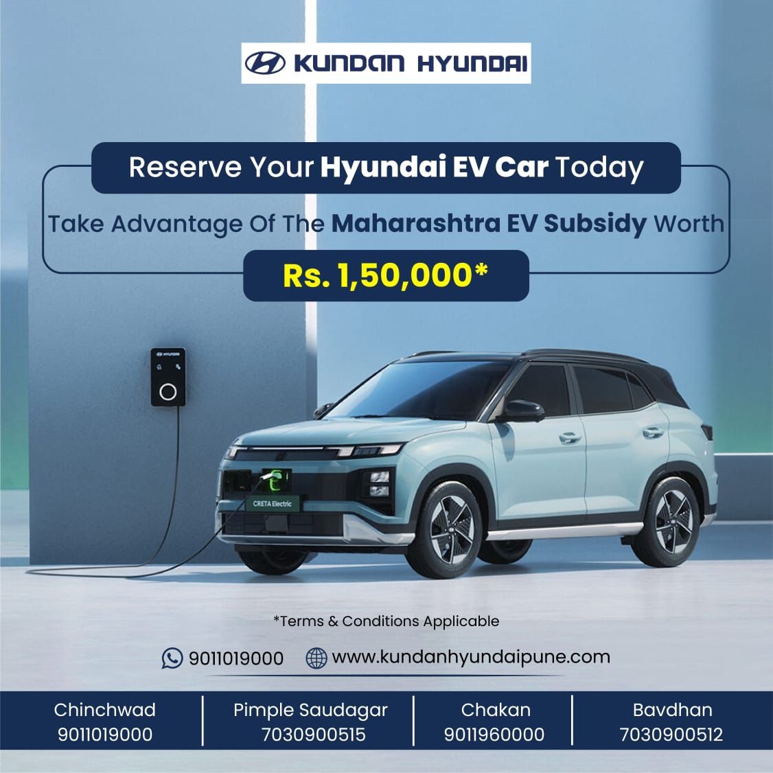Get a subsidy of ₹1, 50, 000 on the Creta EV under the Maharashtra government scheme at Kundan Hyundai today.